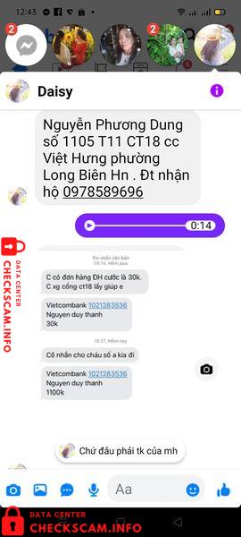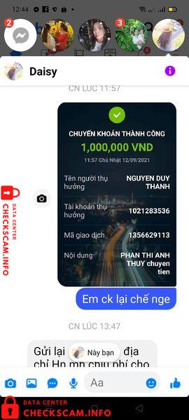 Scammer Alert: Nguyen Duy Thanh Reported: November 16, 2024 Scammer Information Full Name: Nguyen Duy Thanh Payment Gate: Vietcombank Payment Account: 1021283536 Category: Marketplace scams Source: Checkscam Evidence Files Report Description Đây là tất cả hình ảnh và hàng em gửi đây Lừa đảo mới đây nè Comments Your comment Add Comment No comments yet. Be the first to share your experience with this scammer.