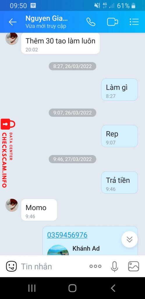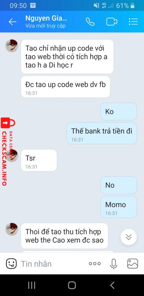 Scammer Alert: Nguyễn Gia Huy Reported: November 16, 2024 Scammer Information Full Name: Nguyễn Gia Huy Phone Number: 0925490360 Payment Gate: MoMo Payment Account: 0925490360 Category: Marketplace scams Source: Checkscam Evidence Files Report Description Nó Là Thằng Trùm Scam Nhận Làm Web Thuê Làm 1 Đến 5 Ngày Thấy Lâu Quá Bảo Trả Tiền R Bảo Đưa Momo Xong Chặn Lun Comments Your comment Add Comment No comments yet. Be the first to share your experience with this scammer.
