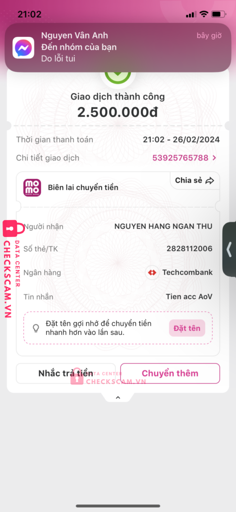 Scammer Alert: NGUYEN HANG NGAN THU Reported: November 16, 2024 Scammer Information Full Name: NGUYEN HANG NGAN THU Payment Gate: techcombank Payment Account: 2828112006 Category: Marketplace scams Source: Checkscam Evidence Files Report Description 2acc dụ dỗ scam Comments Your comment Add Comment No comments yet. Be the first to share your experience with this scammer.