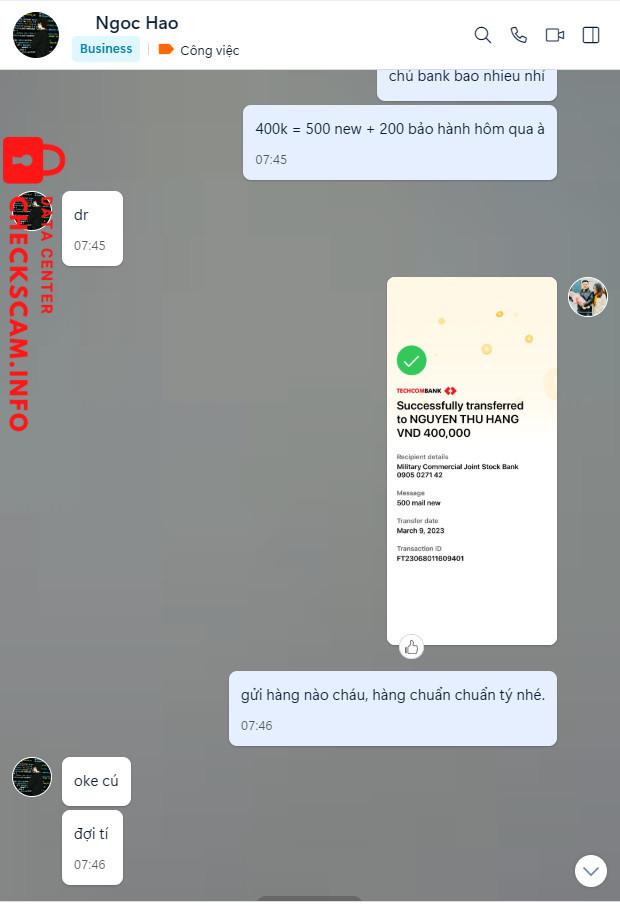 Zalo: Ngoc Hao (hoặc Hao)