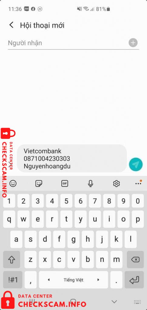 Scammer Alert: Nguyen Hoang Du Reported: November 16, 2024 Scammer Information Full Name: Nguyen Hoang Du Payment Gate: Vietcombank Payment Account: 0871004230303 Category: Marketplace scams Source: Checkscam Evidence Files Report Description CẢNH BÁO LỪA ĐẢO ????????? Comments Your comment Add Comment No comments yet. Be the first to share your experience with this scammer.