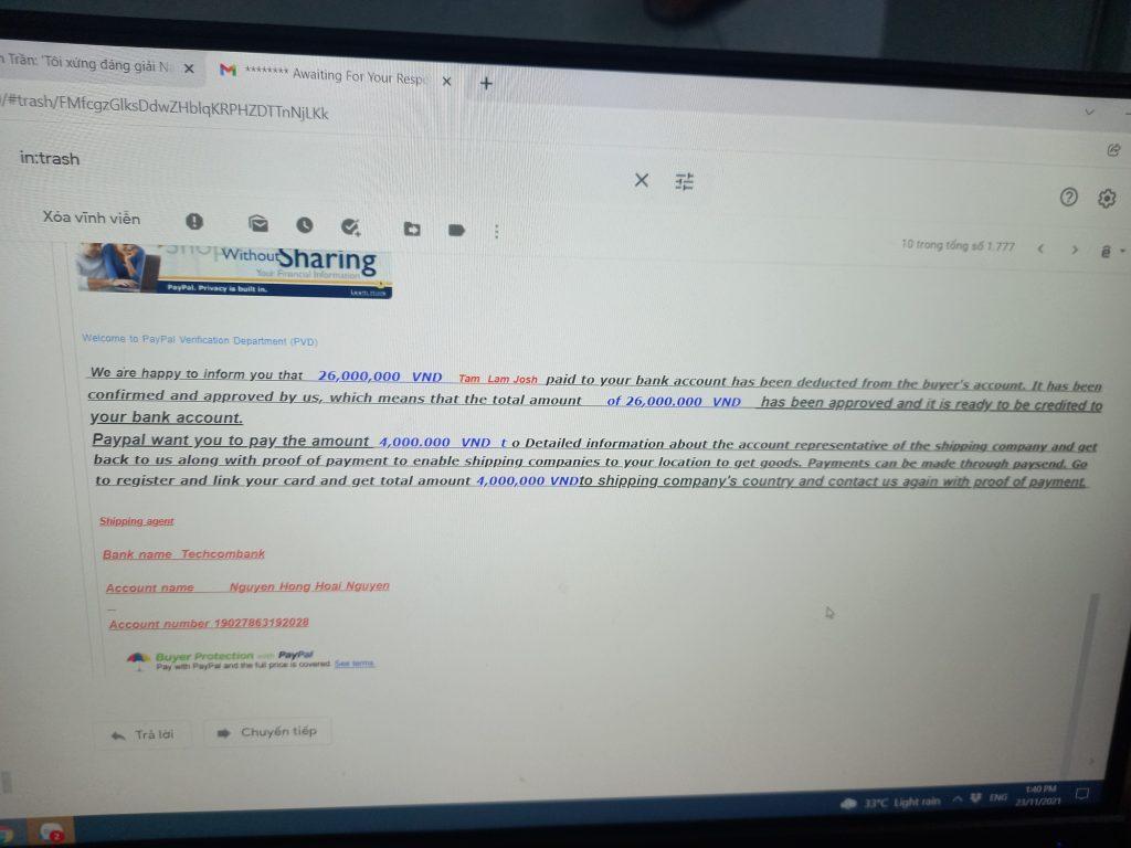 Scammer Alert: Nguyen Hong Hoai Nguyen Reported: November 16, 2024 Scammer Information Full Name: Nguyen Hong Hoai Nguyen Payment Gate: Techcombank Payment Account: 19027863192028 Category: Marketplace scams Source: Checkscam Evidence Files Report Description Lừa đảo là người nước ngoài mua đồ, sau đó yêu cầu chuyển tiền ship. Comments Your comment Add Comment No comments yet. Be the first to share your experience with this scammer.