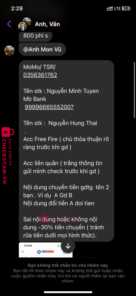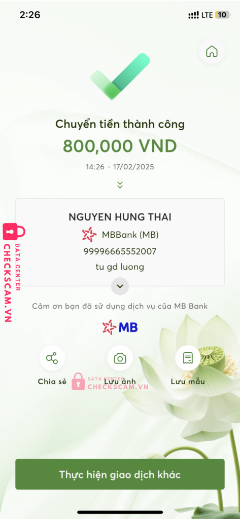 Scammer Alert: NGUYEN HUNG THAI Reported: March 7, 2025 Scammer Information Full Name: NGUYEN HUNG THAI Payment Gate: MBBank Payment Account: 99996665552007 Category: Marketplace scams Source: Checkscam Evidence Files Report Description gdtg lừa đảo Comments Your comment Add Comment No comments yet. Be the first to share your experience with this scammer.