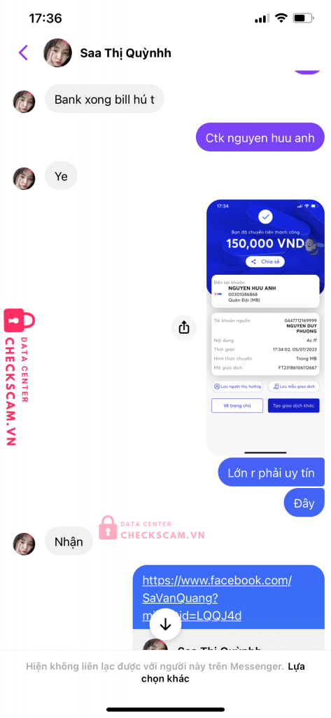 Scammer Alert: Nguyen Huu Anh Reported: November 16, 2024 Scammer Information Full Name: Nguyen Huu Anh Payment Gate: Mb Bank Payment Account: 00301086868 Category: Marketplace scams Source: Checkscam Evidence Files Report Description Lừa mua ac free fire bank nhưng không ném ac và đã block tôi mọi người cẩn thận nha Comments Your comment Add Comment No comments yet. Be the first to share your experience with this scammer.