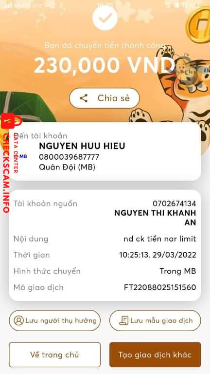 Scammer Alert: Nguyễn Hữu Hiếu Reported: November 16, 2024 Scammer Information Full Name: Nguyễn Hữu Hiếu Payment Gate: MB Bank Payment Account: 0800039687777 Category: Marketplace scams Source: Checkscam Evidence Files Report Description Scam nar 72 limit, bảo gửi hàng rồi sủi Comments Your comment Add Comment No comments yet. Be the first to share your experience with this scammer.