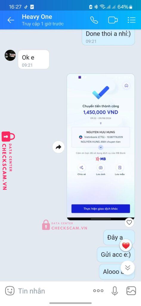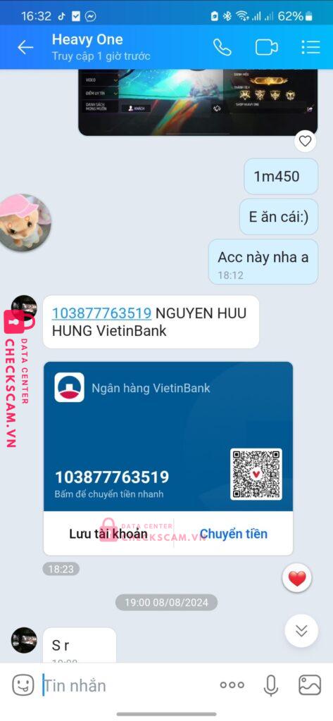 Scammer Alert: Nguyen Huu Hung Reported: March 7, 2025 Scammer Information Full Name: Nguyen Huu Hung Payment Gate: Viettinbank Payment Account: 103877763519 Category: Marketplace scams Source: Checkscam Evidence Files Report Description Lừa Đảo Từ Trước Nhưng Đã Thay đổi số điện thoại và tên để đi lừa tiếp . Comments Your comment Add Comment No comments yet. Be the first to share your experience with this scammer.