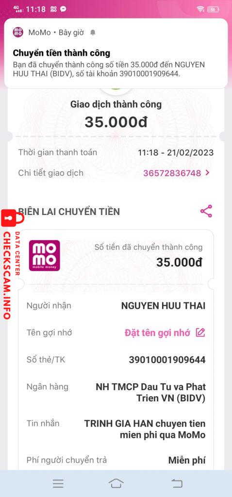 Scammer Alert: NGUYEN HUU THAi Reported: November 16, 2024 Scammer Information Full Name: NGUYEN HUU THAi Payment Gate: BIDV Payment Account: 39010001909644 Category: Marketplace scams Source: Checkscam Evidence Files Report Description Scam =)) trốn Comments Your comment Add Comment No comments yet. Be the first to share your experience with this scammer.