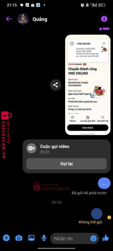 Scammer Alert: NGUYEN HUU THANG Reported: March 7, 2025 Scammer Information Full Name: NGUYEN HUU THANG Payment Gate: MB Bank Payment Account: 26042000005 Category: Marketplace scams Source: Checkscam Evidence Files Report Description Bán Acc Lừa đảo chuyển khoản rồi chặn Comments Your comment Add Comment No comments yet. Be the first to share your experience with this scammer.