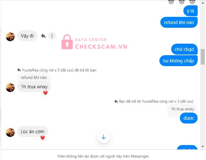 Lừa đảo nhây không gửi hàng 2 tuần liền -> Em đòi bồi thường nhưng bị nhây 4 ngày và thằng nhóc không chịu, liên tục hứa và trễ hẹn -> Cuối cùng block em và nói dối, đổ thừa cho người khác