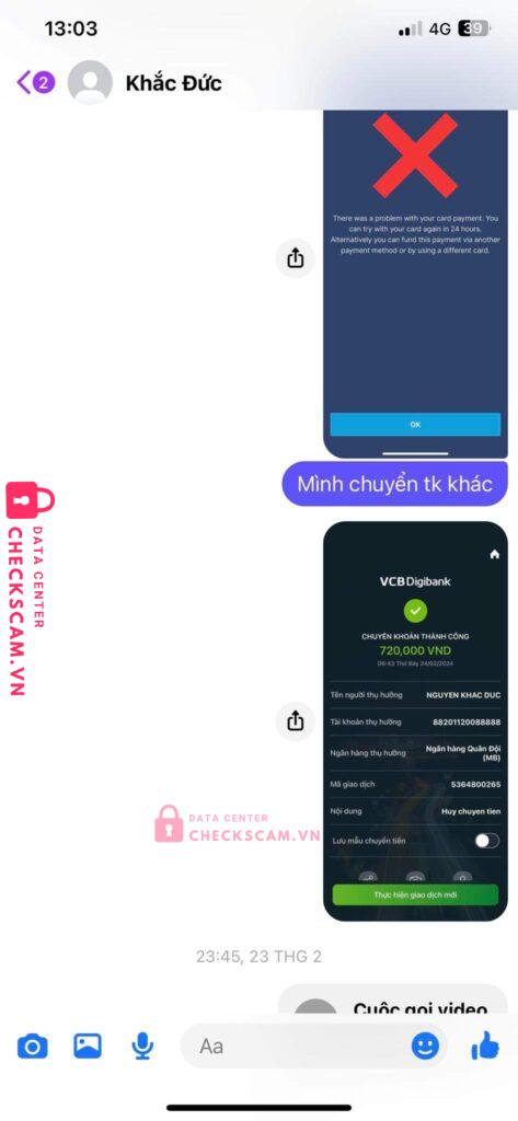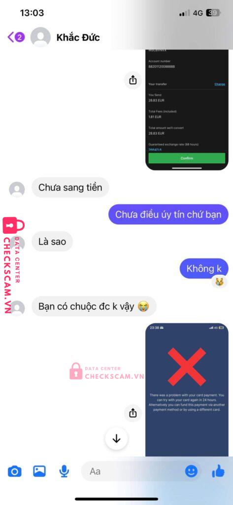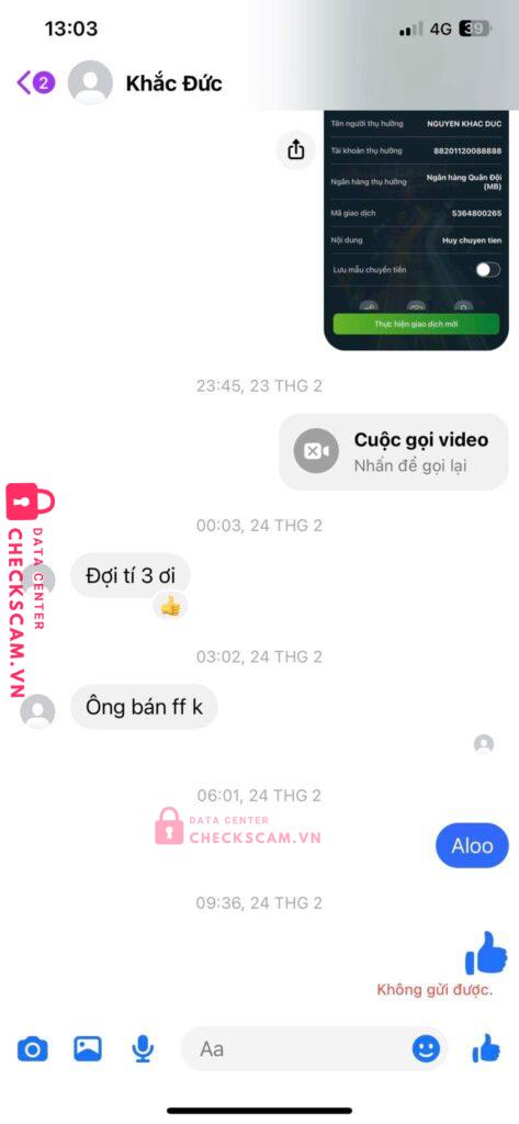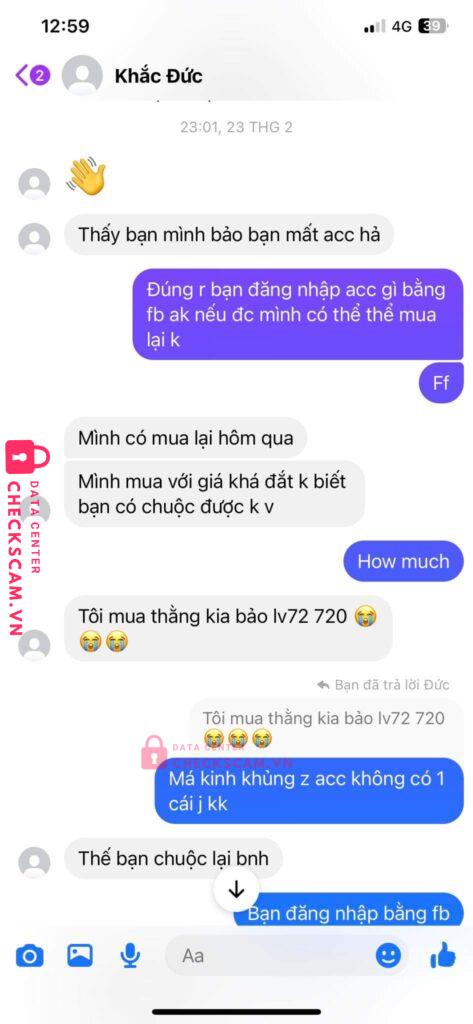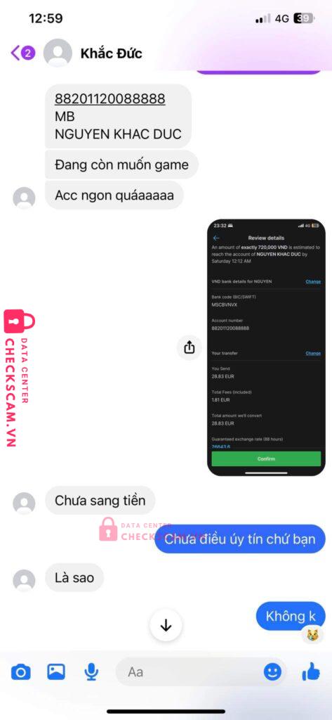 Scammer Alert: Nguyễn khắc Đức Reported: November 16, 2024 Scammer Information Full Name: Nguyễn khắc Đức Payment Gate: Mb Payment Account: 88201120088888 Category: Marketplace scams Source: Checkscam Evidence Files Report Description scam tiền acc 720k Comments Your comment Add Comment No comments yet. Be the first to share your experience with this scammer.