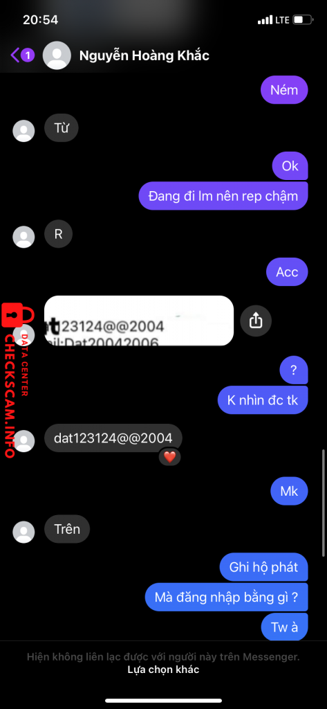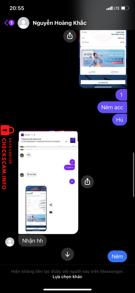 Scammer Alert: Nguyễn Khắc Hoàn Reported: November 16, 2024 Scammer Information Full Name: Nguyễn Khắc Hoàn Payment Gate: Mb Payment Account: 0374068525 Category: Marketplace scams Source: Checkscam Evidence Files Report Description Scam acc dlk 10k Comments Your comment Add Comment No comments yet. Be the first to share your experience with this scammer.