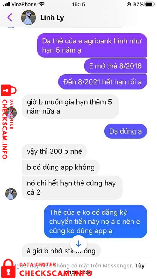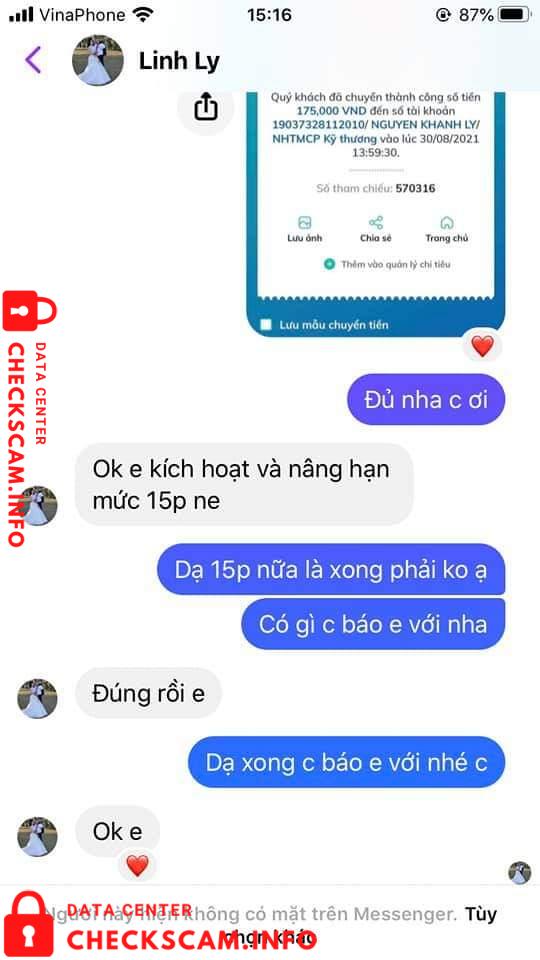 Scammer Alert: Nguyễn Khánh Ly Reported: November 16, 2024 Scammer Information Full Name: Nguyễn Khánh Ly Payment Gate: Thương mại cổ phần kỹ thương Payment Account: 19037328112010 Category: Marketplace scams Source: Checkscam Evidence Files Report Description Lừa đảo nhé mọi người. Mình nhờ nó gia hạn thẻ online. Nó nuốt của mình 400k xong mất tích luôn. Đừng ai bị nó dắt mũi nữa nha mn ơi. Ngu quá ngu mà. Comments Your comment Add Comment No comments yet. Be the first to share your experience with this scammer.