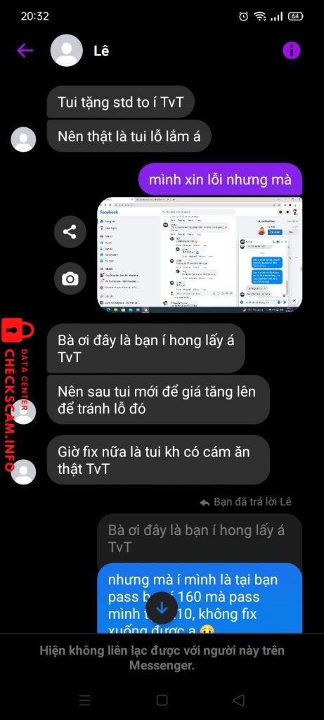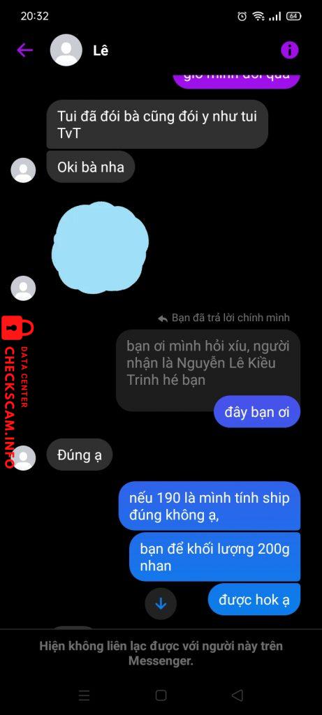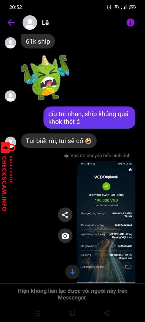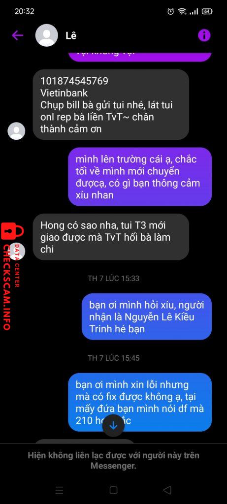 Scammer Alert: Nguyễn Lê Kiều Trinh Reported: November 16, 2024 Scammer Information Full Name: Nguyễn Lê Kiều Trinh Payment Gate: Vietinbank Payment Account: 101874545769 Category: Marketplace scams Source: Checkscam Evidence Files Report Description Scam tiền người khác Comments Your comment Add Comment No comments yet. Be the first to share your experience with this scammer.