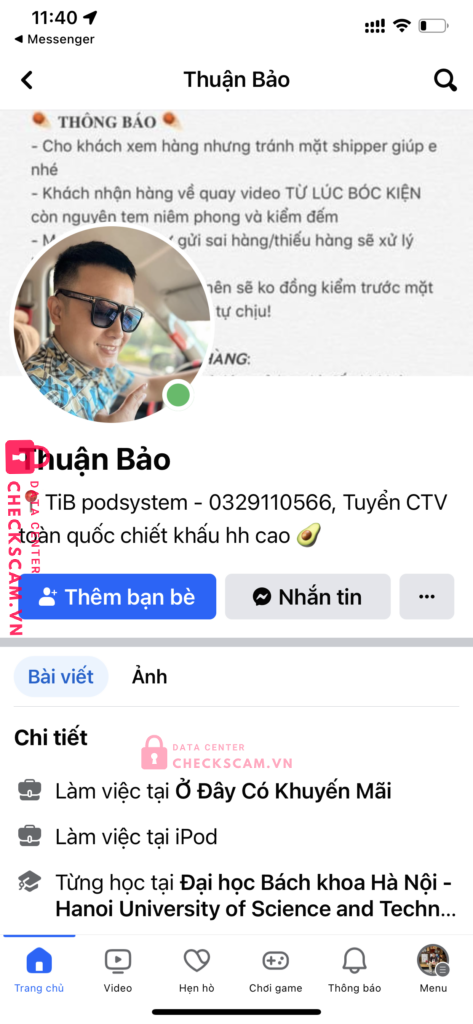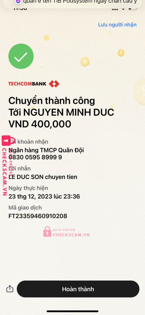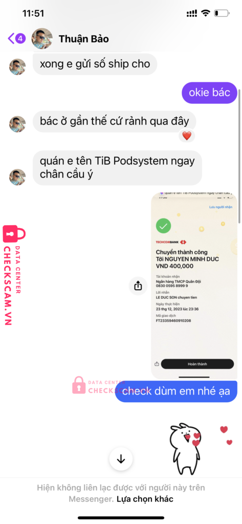 Scammer Alert: Nguyễn Minh Đức Reported: November 16, 2024 Scammer Information Full Name: Nguyễn Minh Đức Payment Gate: mb Payment Account: 0830059589999 Category: Marketplace scams Source: Checkscam Evidence Files Report Description Lừa đảo bán pod Comments Your comment Add Comment No comments yet. Be the first to share your experience with this scammer.