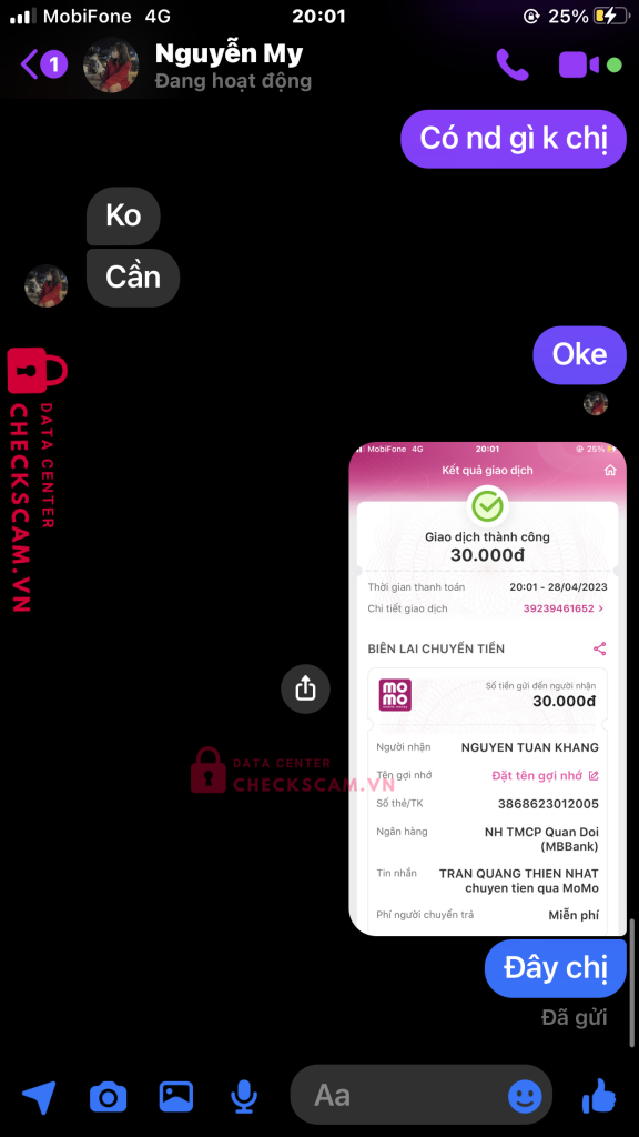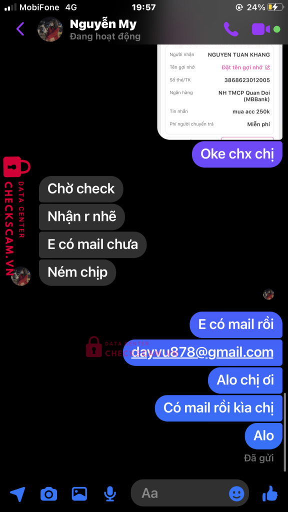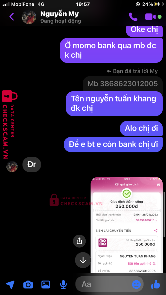 Scammer Alert: Nguyễn Minh Khang Reported: November 16, 2024 Scammer Information Full Name: Nguyễn Minh Khang Payment Gate: Mbbank Payment Account: 3868623012005 Category: Marketplace scams Source: Checkscam Evidence Files Report Description Mình bị nó lừa nó lấy stk khác đưa mình Comments Your comment Add Comment No comments yet. Be the first to share your experience with this scammer.