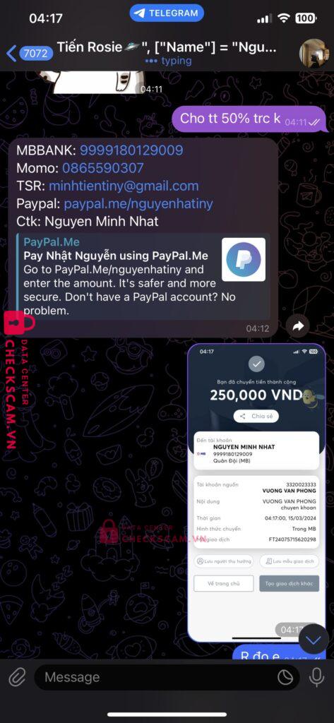 Scammer Alert: Nguyen Minh Nhat Reported: November 16, 2024 Scammer Information Full Name: Nguyen Minh Nhat Payment Gate: MBBANK Payment Account: 9999180129009 Category: Marketplace scams Source: Checkscam Evidence Files Report Description Thuê mod menu mình cọc xong nó block mình Dưới đây là thông tin kẻ scam Comments Your comment Add Comment No comments yet. Be the first to share your experience with this scammer.