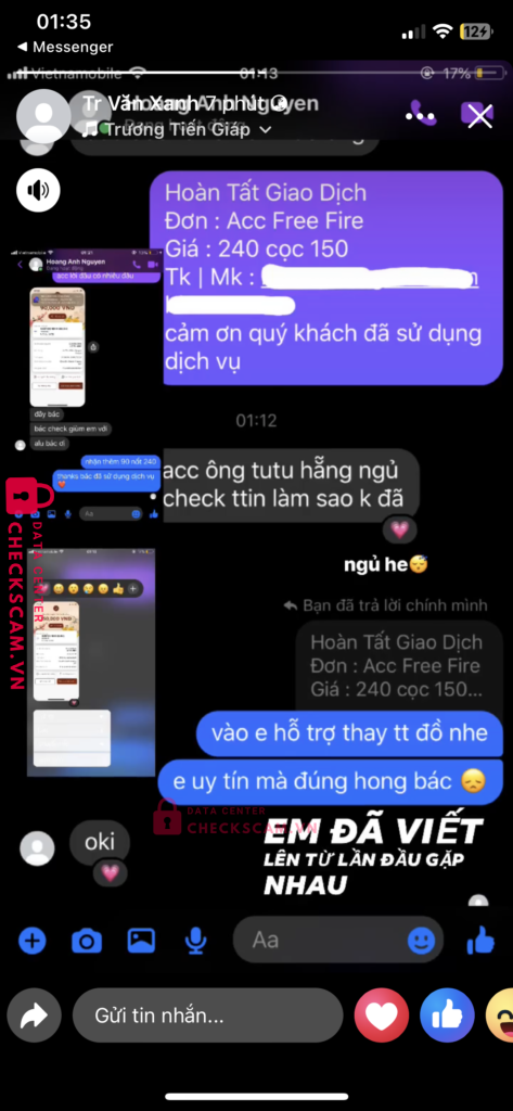 quyết định là cọc do ban đêm nó bảo k có người gdtg, cọc trc 80% check được cái gmail rồi nó bảo chuyển nốt tiền còn lại thì đưa acc,đến lúc chuyển rồi chì chạy block