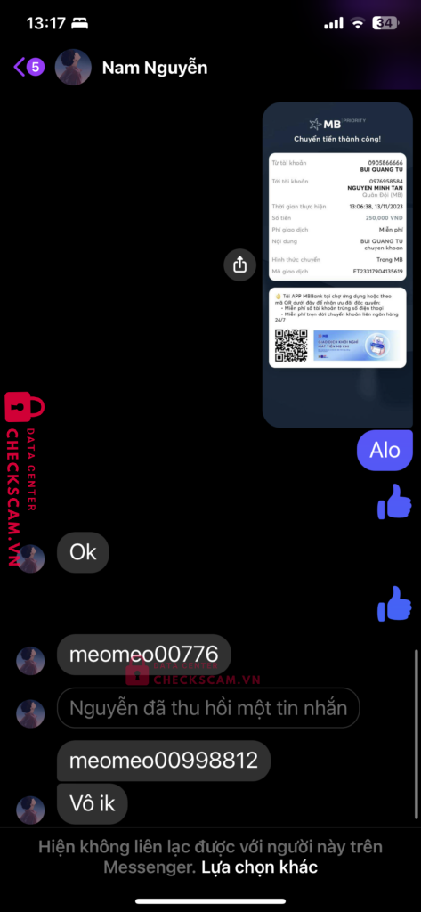 Scammer Alert: Nguyen minh tan Reported: November 16, 2024 Scammer Information Full Name: Nguyen minh tan Payment Gate: Mb bank Payment Account: 0976958584 Category: Marketplace scams Source: Checkscam Evidence Files Report Description Comments Your comment Add Comment No comments yet. Be the first to share your experience with this scammer.