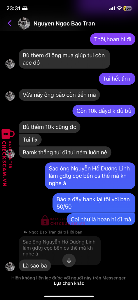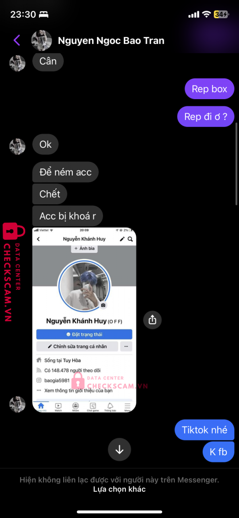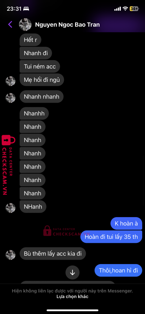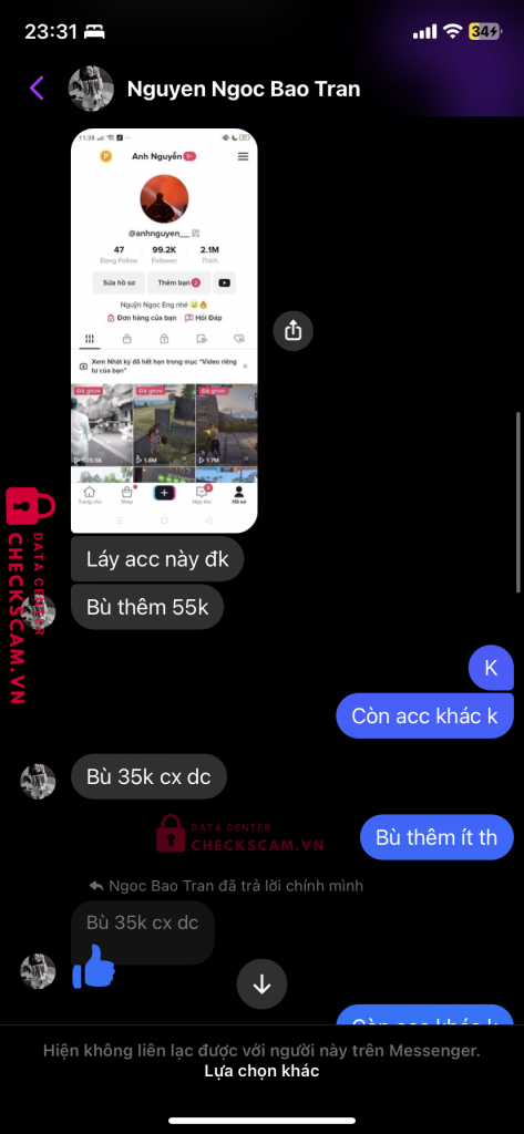 Mua acc của bạn Trân,xong tôi tag box gdtg uy tín là anh Nguyễn Hồ Dương Linh đã cọc ở checkscam.Nhưng nó không đồng ý và nó tag một thằng gdtg fake vào để giao dịch.Sau một hồi nhắn tin thì hắn đã scam tôi.Đây là một vụ thông đồng với nhau để scam người khác.kính mong ad duyệt bài ạ