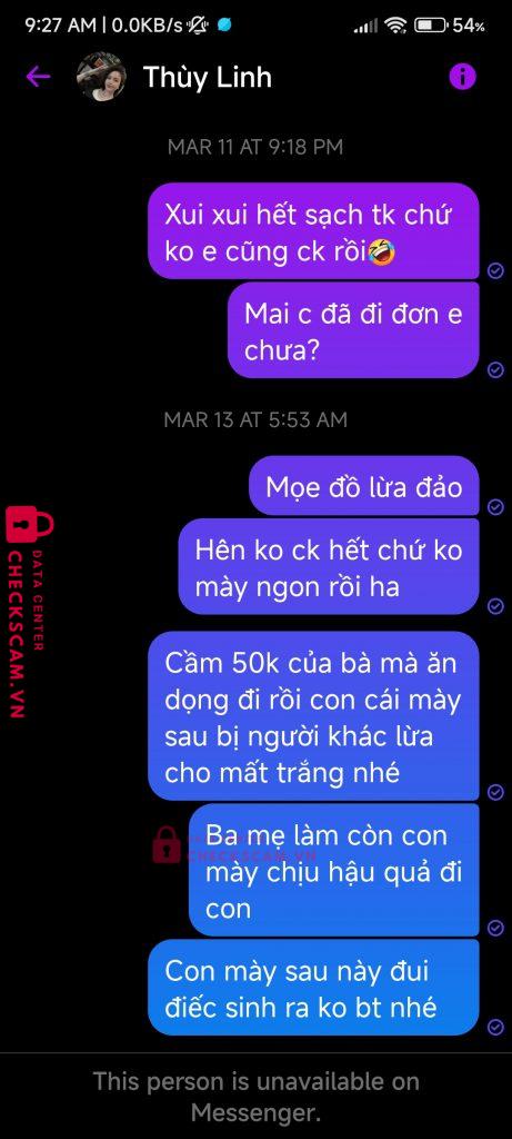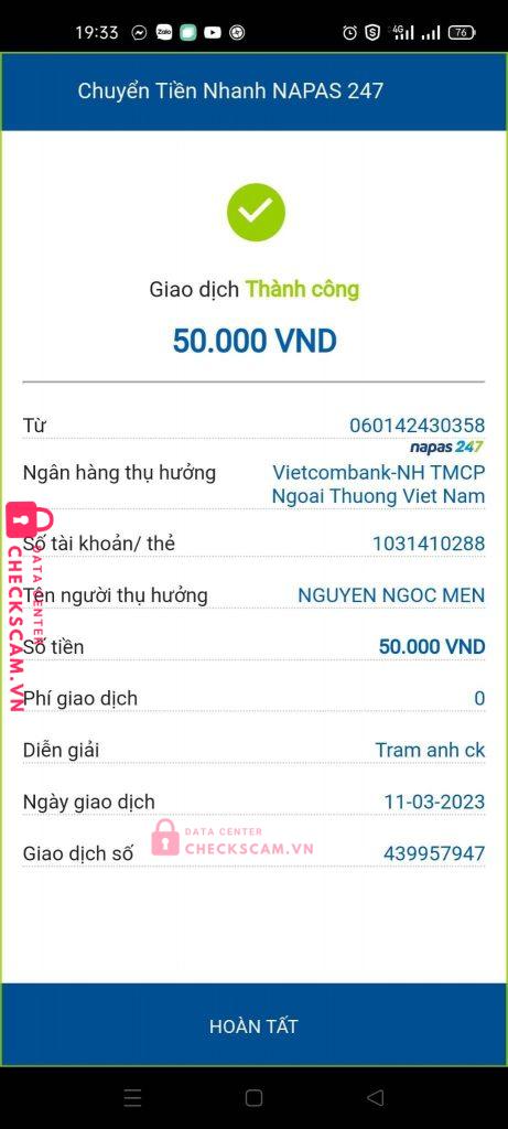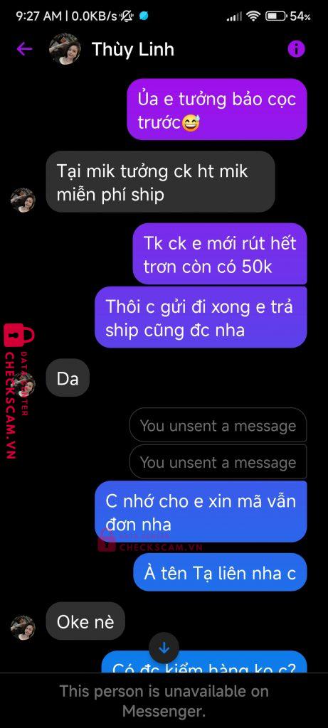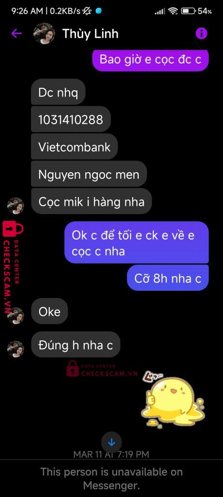 Scammer Alert: Nguyen ngoc men Reported: November 16, 2024 Scammer Information Full Name: Nguyen ngoc men Payment Gate: Vietcombank Payment Account: 1031410288 Category: Marketplace scams Source: Checkscam Evidence Files Report Description Lấy clip ảnh trên mạng lừa đảo bán đồ, bắt cọc trước và ck hết thì mới freeship, có tiền là block mình Comments Your comment Add Comment No comments yet. Be the first to share your experience with this scammer.