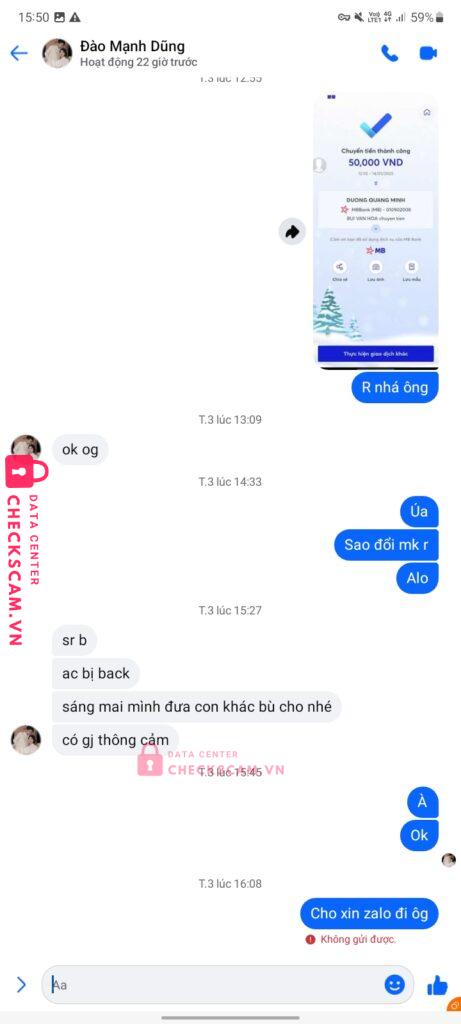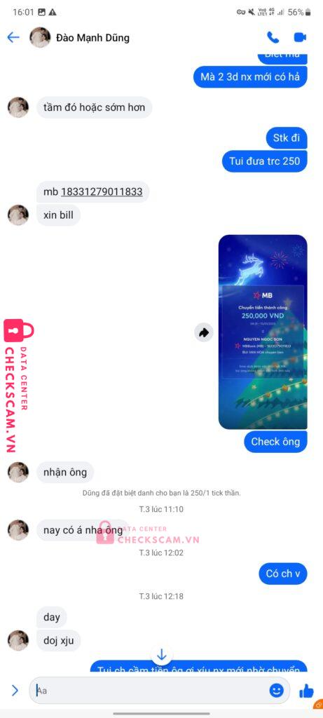 Scammer Alert: NGUYEN NGOC SON Reported: March 7, 2025 Scammer Information Full Name: NGUYEN NGOC SON Payment Gate: Mb Bank Payment Account: 404567899 Category: Marketplace scams Source: Checkscam Evidence Files Report Description Scam fake acc bán Facebook tick xanh + nhận hv dame Comments Your comment Add Comment No comments yet. Be the first to share your experience with this scammer.