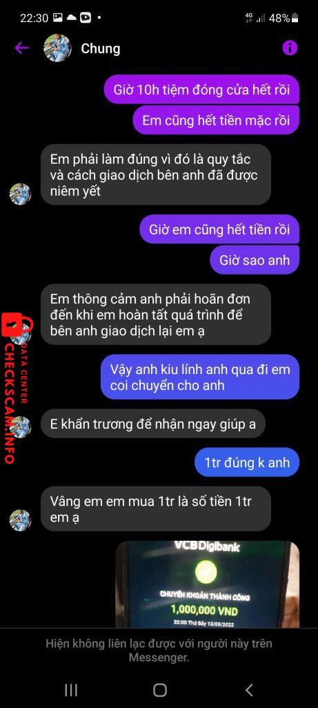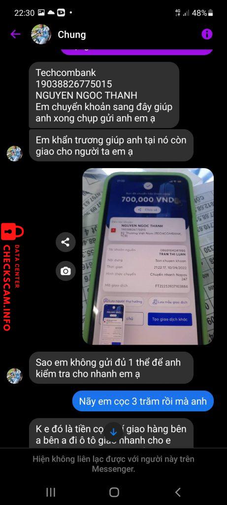 Scammer Alert: Nguyễn ngọc thanh Reported: November 16, 2024 Scammer Information Full Name: Nguyễn ngọc thanh Payment Gate: Techcombank Payment Account: 19038826775015 Category: Marketplace scams Source: Checkscam Evidence Files Report Description Lừa đảo qua mạng Comments Your comment Add Comment No comments yet. Be the first to share your experience with this scammer.