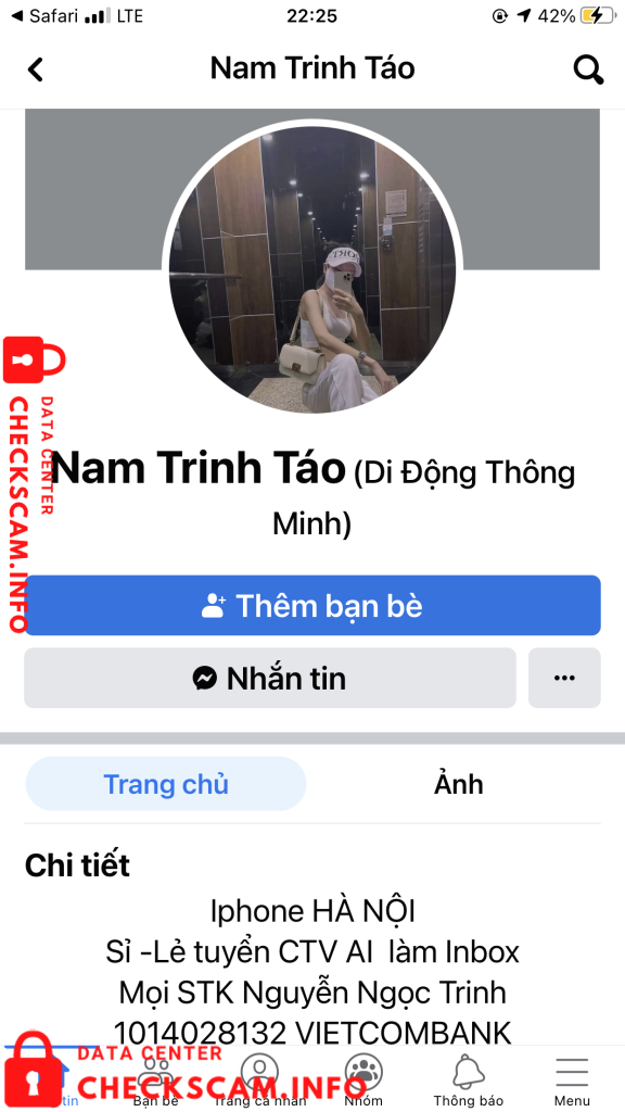 Scammer Alert: Nguyên Ngọc Trinh Reported: November 16, 2024 Scammer Information Full Name: Nguyên Ngọc Trinh Payment Gate: Vietcombank Payment Account: 1014028132 Category: Marketplace scams Source: Checkscam Evidence Files Report Description Nó hack fb của người khác rổi giã danh lừa gạt tuyên ctv gia công tại nhà .rồi đặt cọc .rồi nói chuyên thêm mớ tiền nó mới gửi hàng Comments Your comment Add Comment No comments yet. Be the first to share your experience with this scammer.