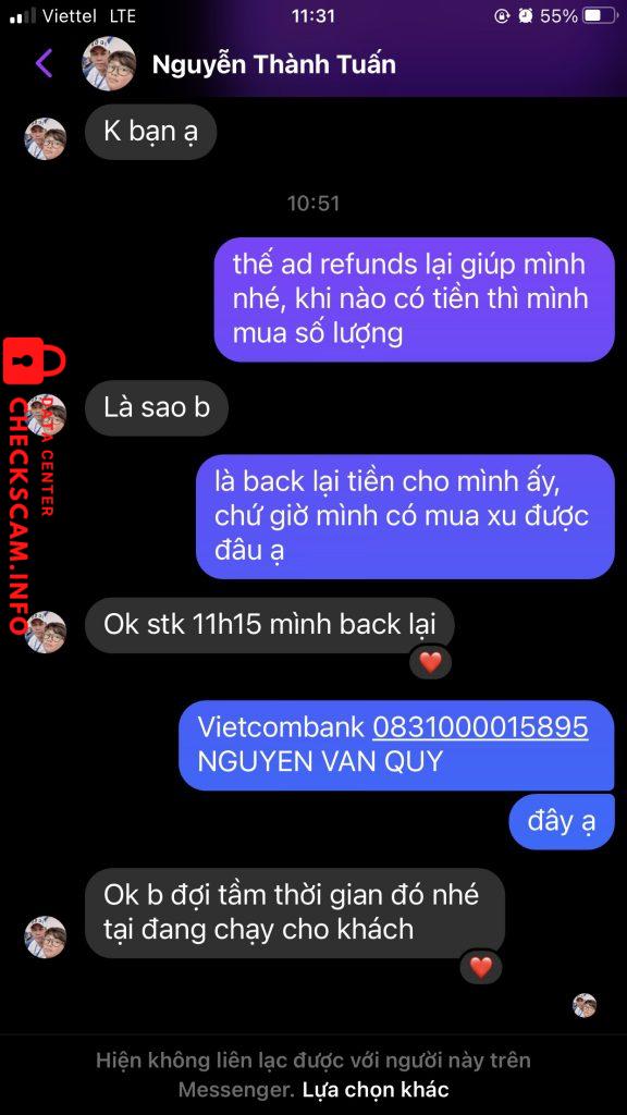 Mình có giao dịch mua xu Tiktok của bạn này, vì thấy bạn cũng là admin của 1 group hơn 60k thành viên, nhưng sau đó đã block mình luôn. Tuy số tiền không nhiều nhưng bực mình vì đặt niềm tin sai chỗ thôi