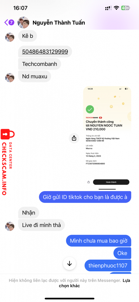 Scammer Alert: Nguyễn Ngọc Tuấn Reported: November 16, 2024 Scammer Information Full Name: Nguyễn Ngọc Tuấn Payment Gate: Techcombank Payment Account: 50486483129999 Category: Marketplace scams Source: Checkscam Evidence Files Report Description Scam Comments Your comment Add Comment No comments yet. Be the first to share your experience with this scammer.