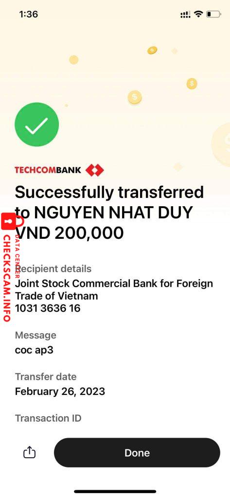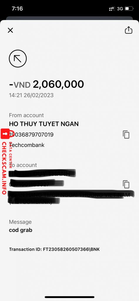 stk trong ảnh scam tổng là 2tr2, t mua airpods nhưng sau khi t check thì phát hiện airpods fake, seller đã block t, t cọc 200k trước, r sau đó cod grab 2tr còn lại nên bill thứ 2 là t ck cho grab, ảnh cọc 200k là cho seller, bị scam trên facebook marketplace ạ