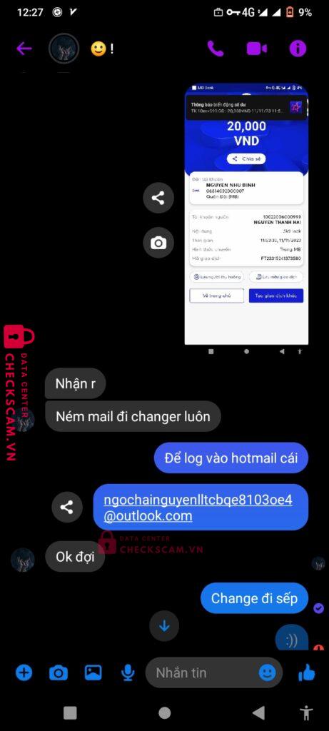 Scammer Alert: NGUYEN NHU BINH Reported: November 16, 2024 Scammer Information Full Name: NGUYEN NHU BINH Payment Gate: MB BANK Payment Account: 06814092000007 Category: Marketplace scams Source: Checkscam Evidence Files Report Description Rẻ rách bán via clone facebook scam Comments Your comment Add Comment No comments yet. Be the first to share your experience with this scammer.