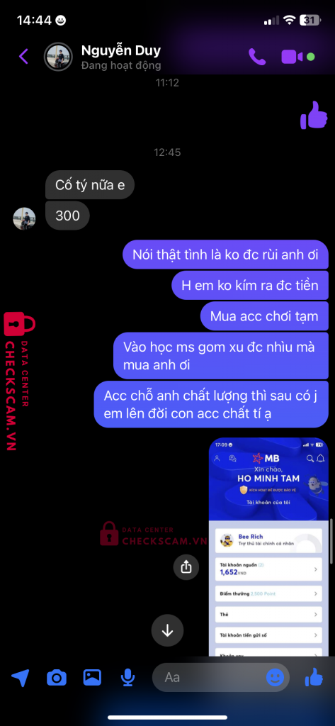 Cứ bắt chuyển tiền lấy acc ngon hơn trong khi đó acc mới nhập về kêu hết nhắn tin thì trả lời đại cho có rồi bơ luôn cứ diện cớ này kia các thứ để moi tiền của khách cho bằng đc
