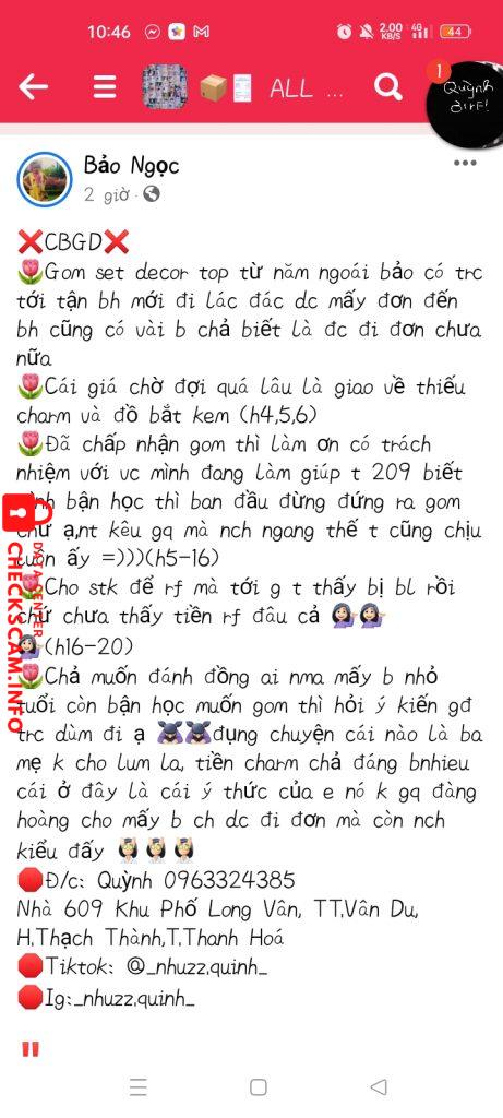 Nguyễn Như Quỳnh mở cái bài gom sau đó lại biến mất với lí do bận học lúc thì bận ôn thi khi thì cha mẹ tịch thu đt , dùng rất nhiều lí do với các gr gom sau đó từ từ block các người mua cuối cùng thì khoá acc