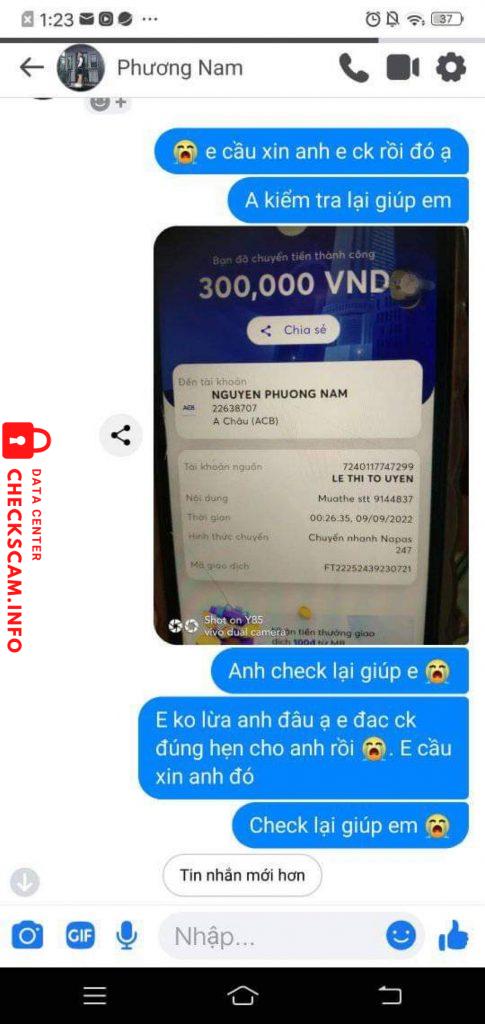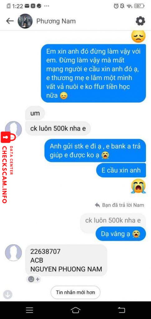 Scammer Alert: NGUYEN PHUONG NAM Reported: November 16, 2024 Scammer Information Full Name: NGUYEN PHUONG NAM Payment Gate: ACB Payment Account: 22638707 Category: Marketplace scams Source: Checkscam Evidence Files Report Description Lợi dụng người thiếu hiểu biết để đánh cắp icloud và tống tiền sau đó đòi xem ảnh cơ thể mại dâm và chặn tài khoản người bị hại Comments Your comment Add Comment No comments yet. Be the first to share your experience with this scammer.