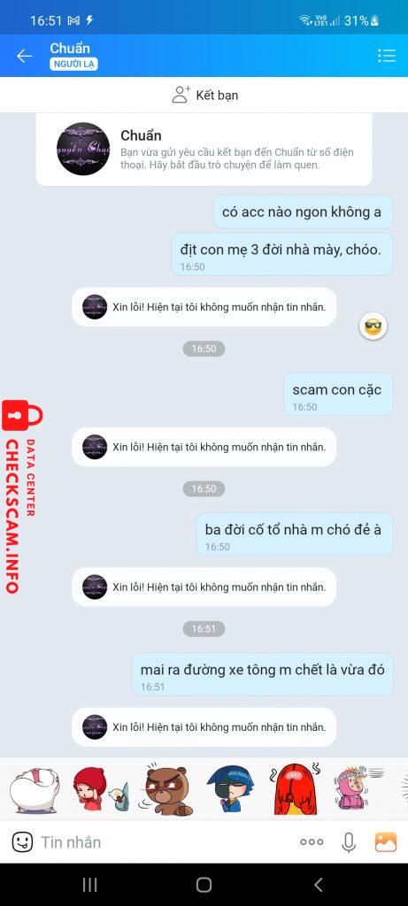 Scammer Alert: Nguyễn Quang Chuẩn Reported: November 16, 2024 Scammer Information Full Name: Nguyễn Quang Chuẩn Payment Gate: MB Bank Payment Account: 8999999999876 Category: Marketplace scams Source: Checkscam Evidence Files Report Description Scam acc free fire và chiếm đoạt tiền. Comments Your comment Add Comment No comments yet. Be the first to share your experience with this scammer.