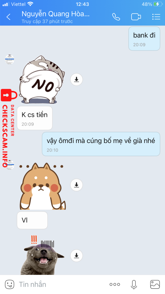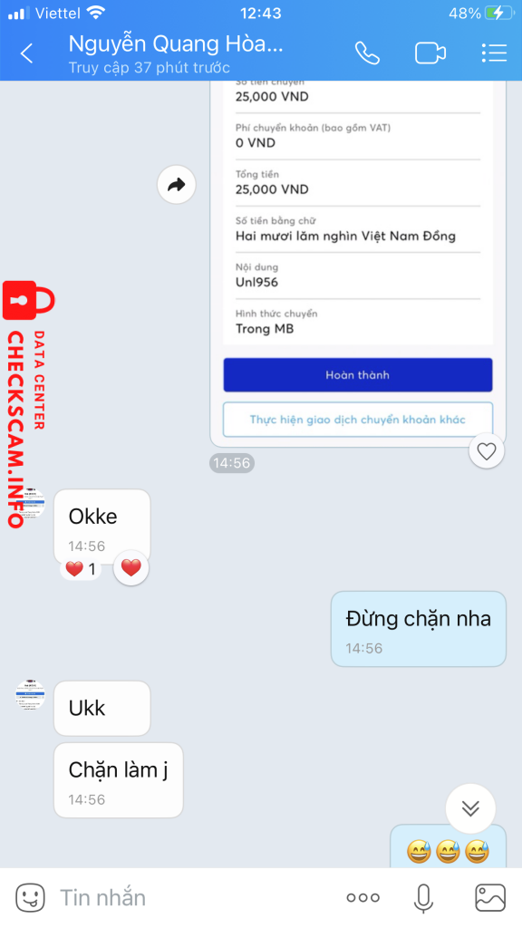 Scammer Alert: Nguyễn Quang Hoà Reported: November 16, 2024 Scammer Information Full Name: Nguyễn Quang Hoà Payment Gate: Mb bank Payment Account: 8888333499999 Category: Marketplace scams Source: Checkscam Evidence Files Report Description Lừa đảo tiền unl fb Comments Your comment Add Comment No comments yet. Be the first to share your experience with this scammer.