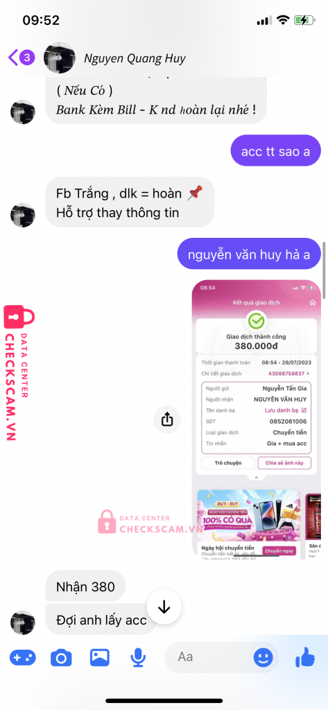 Scammer Alert: NGUYỄN QUANG HUY Reported: November 16, 2024 Scammer Information Full Name: NGUYỄN QUANG HUY Payment Gate: MB BANK Payment Account: 87987088888 Category: Marketplace scams Source: Checkscam Evidence Files Report Description lừa đảoo tiền mua acc game Comments Your comment Add Comment No comments yet. Be the first to share your experience with this scammer.