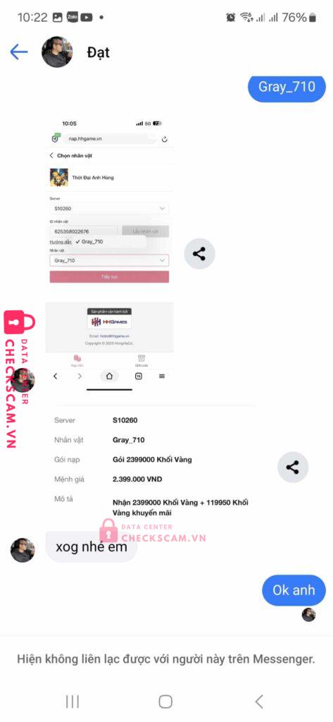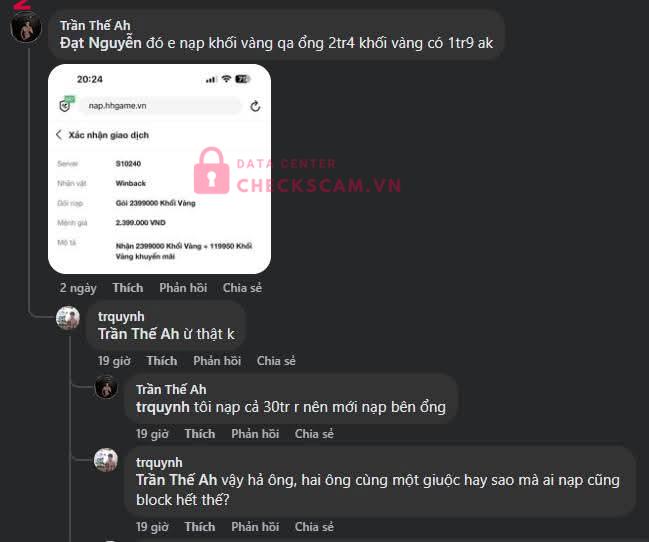Ngày hôm qua 26/12/2024 khoảng từ 10:03 có liên hệ với người này để nạp game sau khi chuyển tiền xong thì hắn chặn fb, còn log clone vào các group game seeding để tăng uy tín giúp hắn dễ dàng lừa đảo hơn. Xem qua các tin trên fb của hắn thì chắc chắn lừa đảo rất nhiều người ở nhiều tựa game khác nhau.Tên này đang ở Bình Dương. STK trên có kèm sdt của hắn:0345536584. AE cảnh giác thằng này.