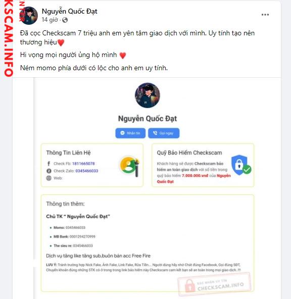Scammer Alert: Nguyễn Quốc Đạt (Fake BH Checkscam)