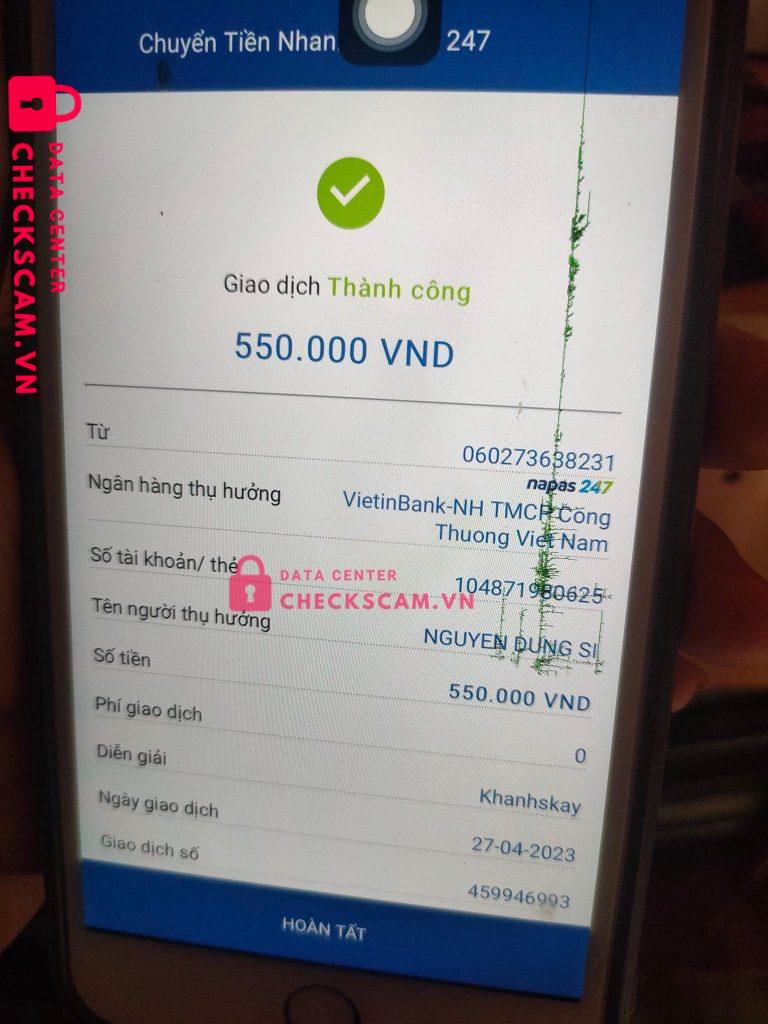 Scammer Alert: Nguyễn Sĩ Reported: November 16, 2024 Scammer Information Full Name: Nguyễn Sĩ Payment Gate: VIETINBANK Payment Account: 104871980625 Category: Marketplace scams Source: Checkscam Evidence Files Report Description Lừa đảo mua bán ặc đột kích Comments Your comment Add Comment No comments yet. Be the first to share your experience with this scammer.