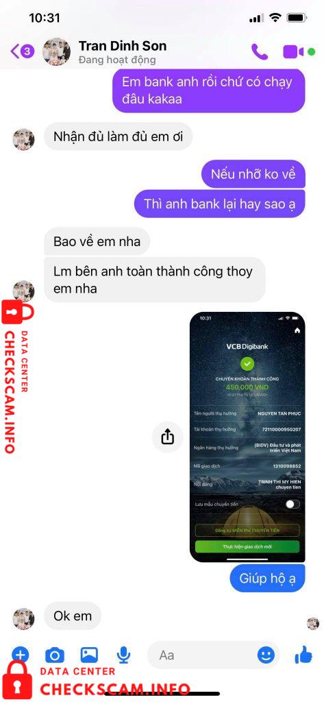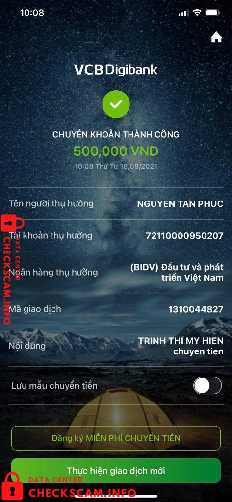 Scammer Alert: Nguyen Tan Phuc Reported: November 16, 2024 Scammer Information Full Name: Nguyen Tan Phuc Payment Gate: bidv Payment Account: 72110009950207 Category: Marketplace scams Source: Checkscam Evidence Files Report Description Dịch làm ăn khó ăn, còn lừa nhau như thế này ??? THẤT ĐỨC CHẾT ĐI ĐƯỢC Comments Your comment Add Comment No comments yet. Be the first to share your experience with this scammer.