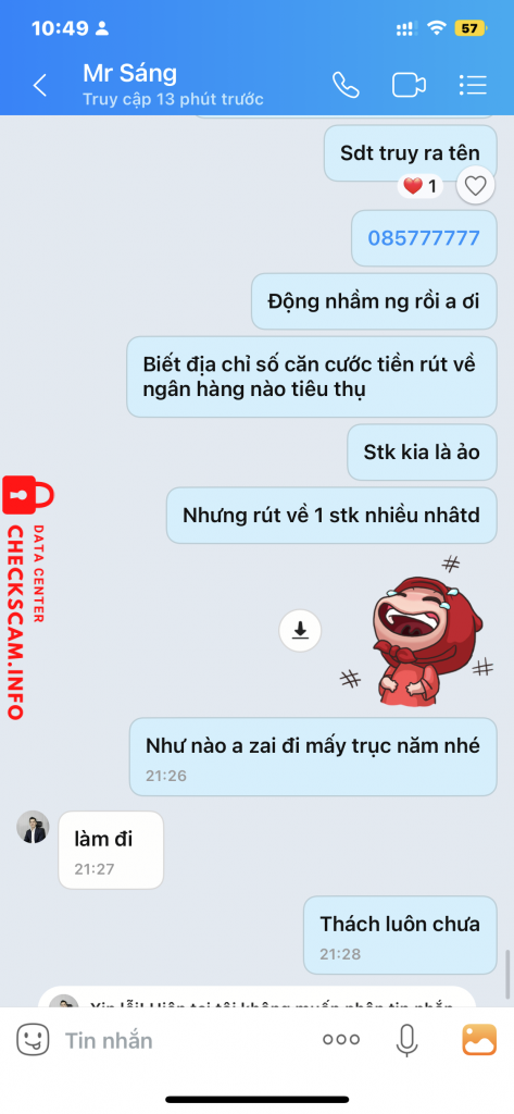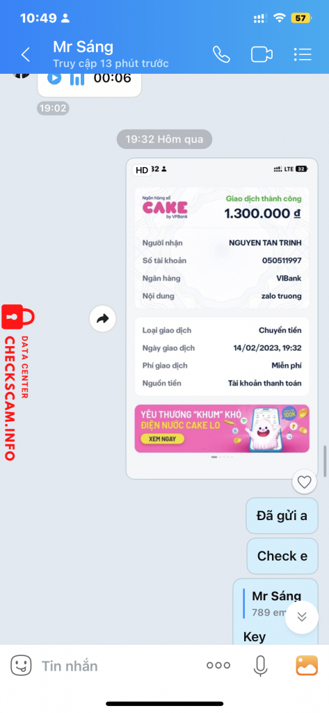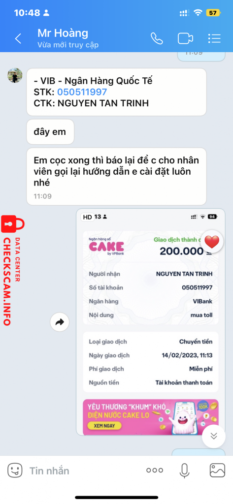 Scammer Alert: NGUYEN TAN TRINH Reported: November 16, 2024 Scammer Information Full Name: NGUYEN TAN TRINH Payment Gate: ViB ngân hàng Quốc tế Payment Account: 050511997 Category: Marketplace scams Source: Checkscam Evidence Files Report Description Lừa đảo bán tool tài xỉu, chiếm đoạt tài sản, chiêu trò mua key và không sử dụng đc tool Comments Your comment Add Comment No comments yet. Be the first to share your experience with this scammer.
