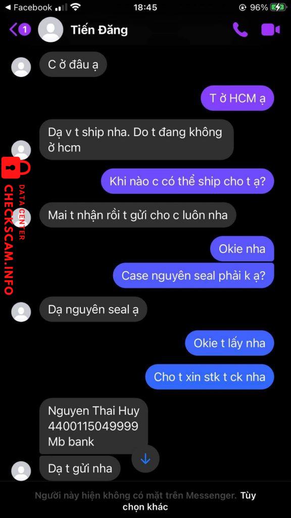 Scammer Alert: Nguyen Thai Huy Reported: November 16, 2024 Scammer Information Full Name: Nguyen Thai Huy Phone Number: 0792403203 Payment Gate: MB Payment Account: 4400115049999 Category: Marketplace scams Source: Checkscam Evidence Files Report Description Lừa đảo tiền, khách ck xong nó xoá facebook luôn Comments Your comment Add Comment No comments yet. Be the first to share your experience with this scammer.