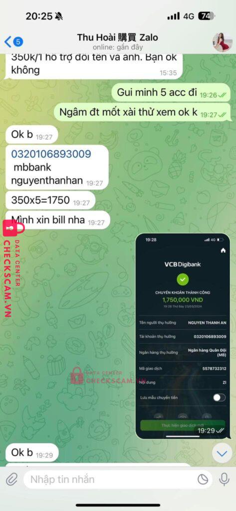 Scammer Alert: Nguyễn Thành An Reported: November 16, 2024 Scammer Information Full Name: Nguyễn Thành An Payment Gate: Mbbank Payment Account: 0320106893009 Category: Marketplace scams Source: Checkscam Evidence Files Report Description Lừa Mua Bán Zalo Comments Your comment Add Comment No comments yet. Be the first to share your experience with this scammer.