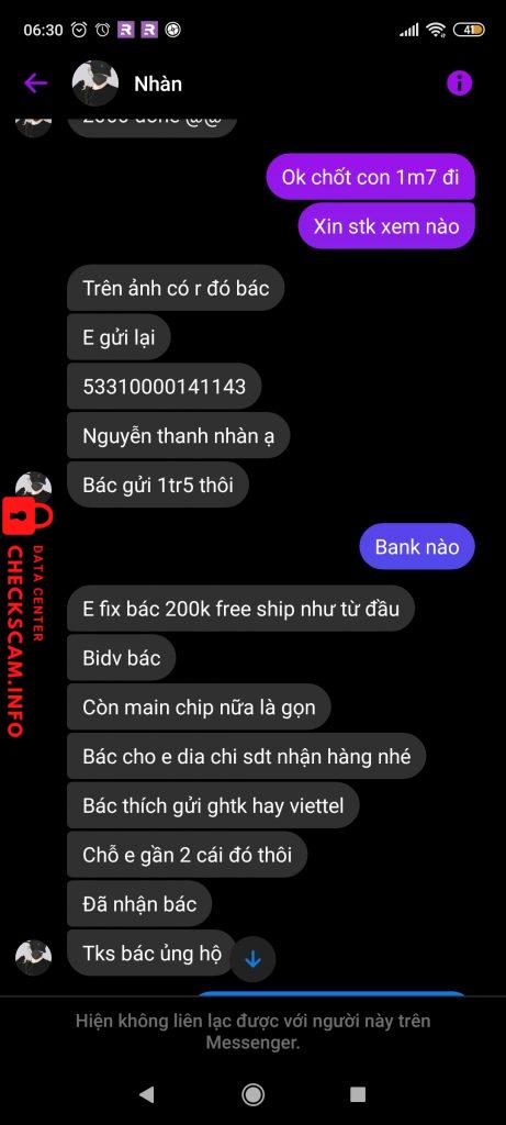 Scammer Alert: Nguyễn thanh nhàn Reported: November 16, 2024 Scammer Information Full Name: Nguyễn thanh nhàn Payment Gate: Bidv Payment Account: 53310000141143 Category: Marketplace scams Source: Checkscam Evidence Files Report Description Nó quảng cáo bán vga giá rẻ, bảo tôi chuyên tiền full trước. Chuyển xong thì chặn messenger tộ luôn hic hic Comments Your comment Add Comment No comments yet. Be the first to share your experience with this scammer.