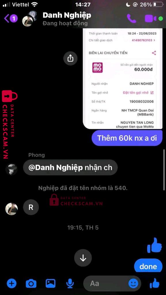 Scammer Alert: Nguyễn Thanh Phong Reported: November 16, 2024 Scammer Information Full Name: Nguyễn Thanh Phong Payment Gate: Mb bank Payment Account: 929122004999 Category: Marketplace scams Source: Checkscam Evidence Files Report Description Bạn này bao back vừa done xong back bạn này hay giao dịch qua ad Danh Nghiệp Comments Your comment Add Comment No comments yet. Be the first to share your experience with this scammer.