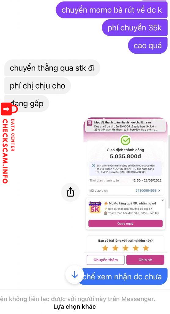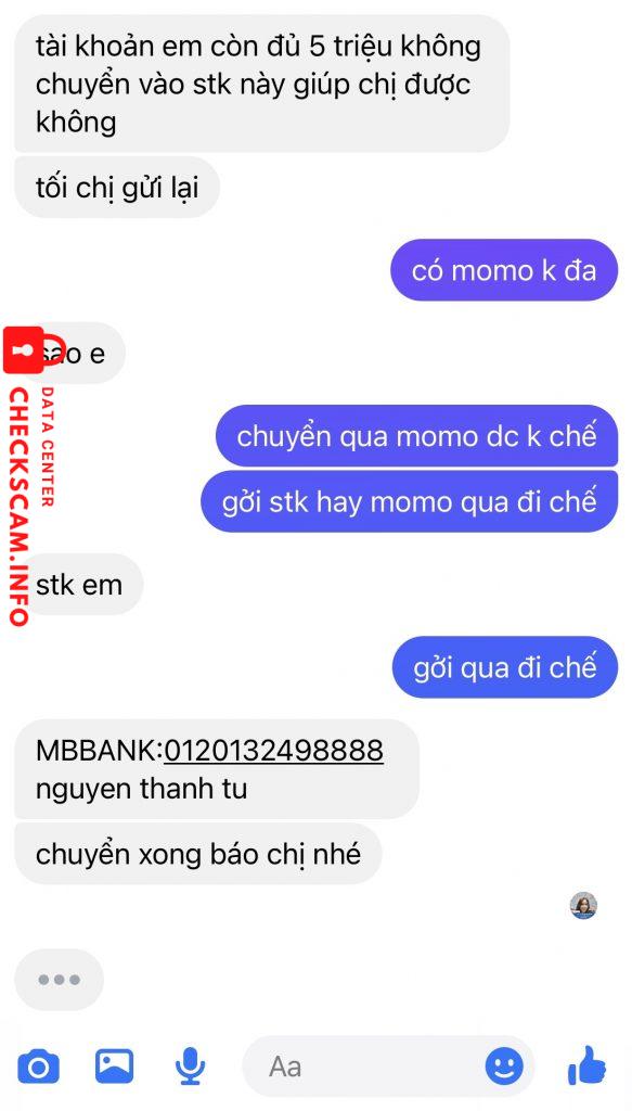 Scammer Alert: Nguyen Thanh Tu Reported: November 16, 2024 Scammer Information Full Name: Nguyen Thanh Tu Payment Gate: MB Bank Payment Account: 0120132498888 Category: Marketplace scams Source: Checkscam Evidence Files Report Description Hack facebook bạn mình mạo danh mượn tiền Comments Your comment Add Comment No comments yet. Be the first to share your experience with this scammer.