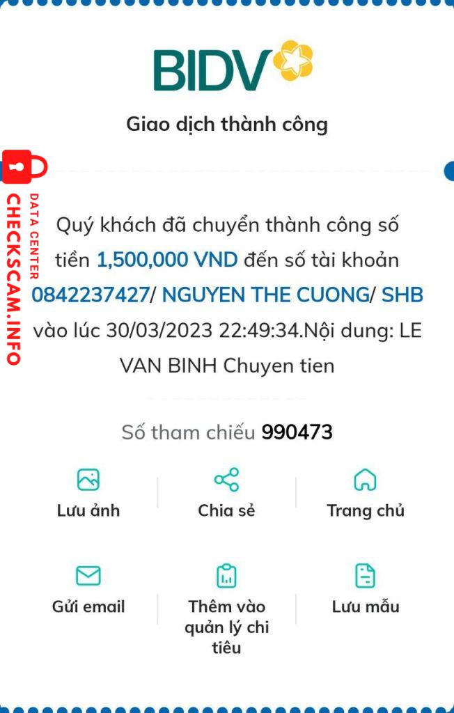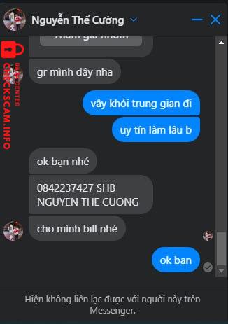 Scammer Alert: nguyen the cuong Reported: November 16, 2024 Scammer Information Full Name: nguyen the cuong Payment Gate: SHB Payment Account: 0842237427 Category: Marketplace scams Source: Checkscam Evidence Files Report Description scam bán tut rip Comments Your comment Add Comment No comments yet. Be the first to share your experience with this scammer.