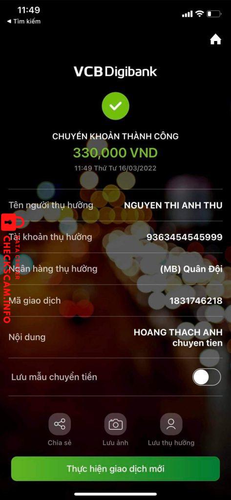 Scammer Alert: NGUYEN THI ANH THU Reported: November 16, 2024 Scammer Information Full Name: NGUYEN THI ANH THU Payment Gate: MB BANK Payment Account: 9363454545999 Category: Marketplace scams Source: Checkscam Evidence Files Report Description scam card Kpop Comments Your comment Add Comment No comments yet. Be the first to share your experience with this scammer.