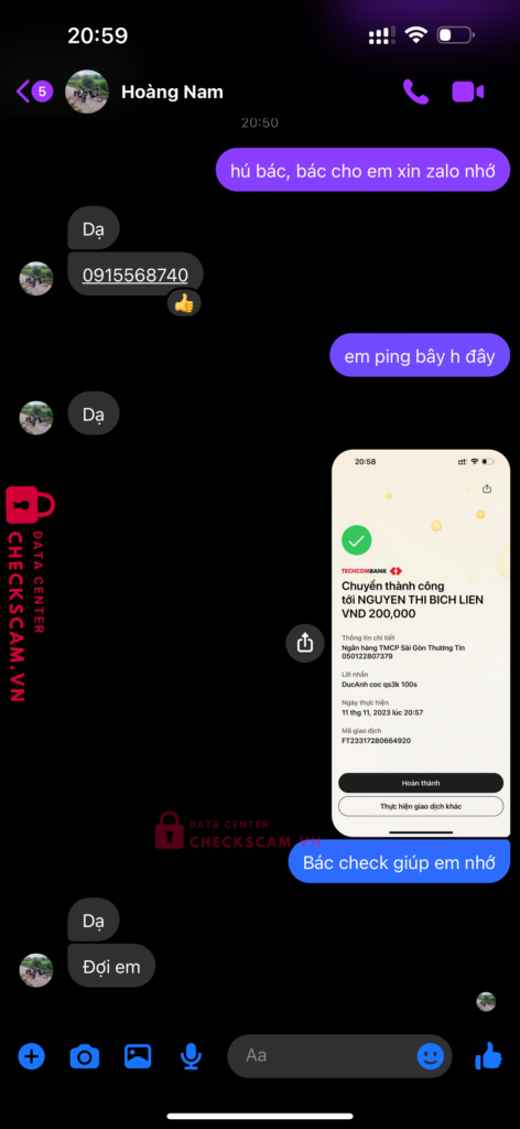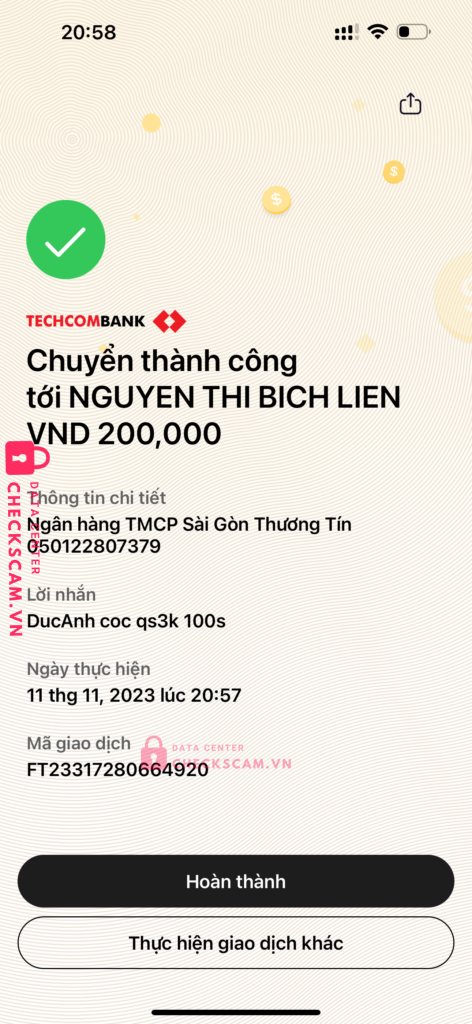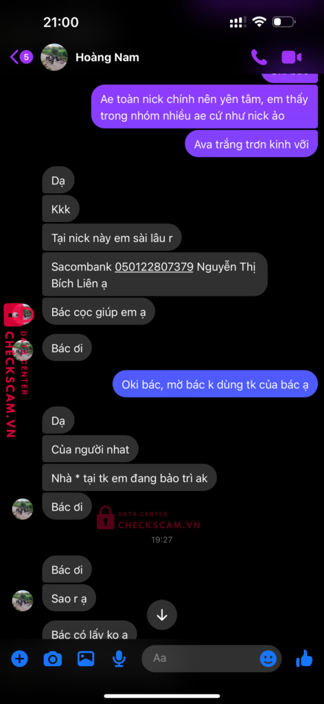 Scammer Alert: Nguyen Thi Bich Lien Reported: November 16, 2024 Scammer Information Full Name: Nguyen Thi Bich Lien Payment Gate: Sacombank Payment Account: 050122807379 Category: Marketplace scams Source: Checkscam Evidence Files Report Description Chuyên lừa cọc, ko gửi hàng rồi 1 2 ngày sau chặn Check hàng có đồng ý gọi video Anh em nên né tránh Comments Your comment Add Comment No comments yet. Be the first to share your experience with this scammer.